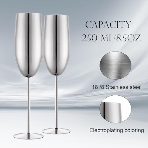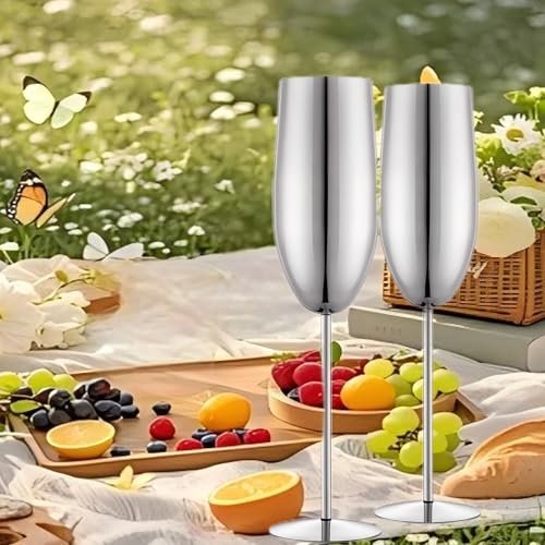 Durable and sturdy: Our champagne flutes are made of food grade stainless steel material, the electroplated surface resists corrosion, ensuring they remain sturdy and unbreakable. Perfect for repeated use, these metal wine glass are ideal for any occasion