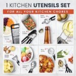 ✅What’s included in this Kitchen Essentials Kit✨: Slotted Spatula, Pasta Server, Slotted Spoon, Slotted Turner, Deep Soup Ladle, Solid Spoon, Slotted Spatula, Flexible Spatula, Egg Whisk, Kitchen Tong, 10 Hookups, Kitchen Scissors, Potato Peeler, Grater, Pizza Cutter, Ice Cream Scoop, 10 Measuring Cups & Spoons and Potato Peeler