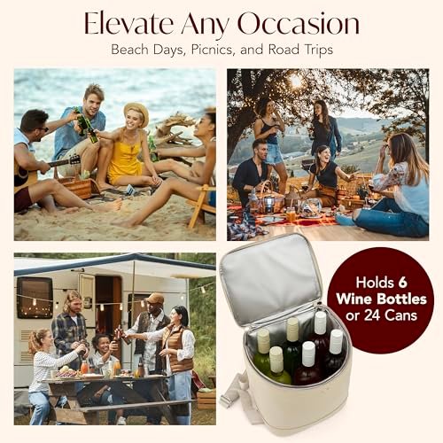 TUMBLERS INCLUDED FOR ON-THE-GO TOASTS: Elevate your experience with the travel cooler bag’s two matching wine tumblers—perfect for sipping poolside, lakeside, or at a scenic overlook; Durable and reusable, they’re included to enhance moments and create shared memories with friends and family