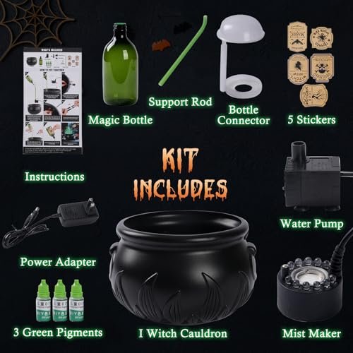ALL-IN-ONE HALLOWEEN DECOR SET – It comes with witches cauldron, green-light mist maker, 3-speed adjustable water pump and all the necessary accessories to DIY Floating Potion.