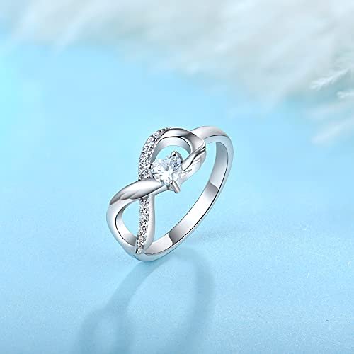 Material: Angel Wings Heart Infinity Ring. Made of 925 sterling silver and rhodium plated . Setting with 10 AAA cubic zirconia stones and a 4 mm heart-shaped cubic zirconia